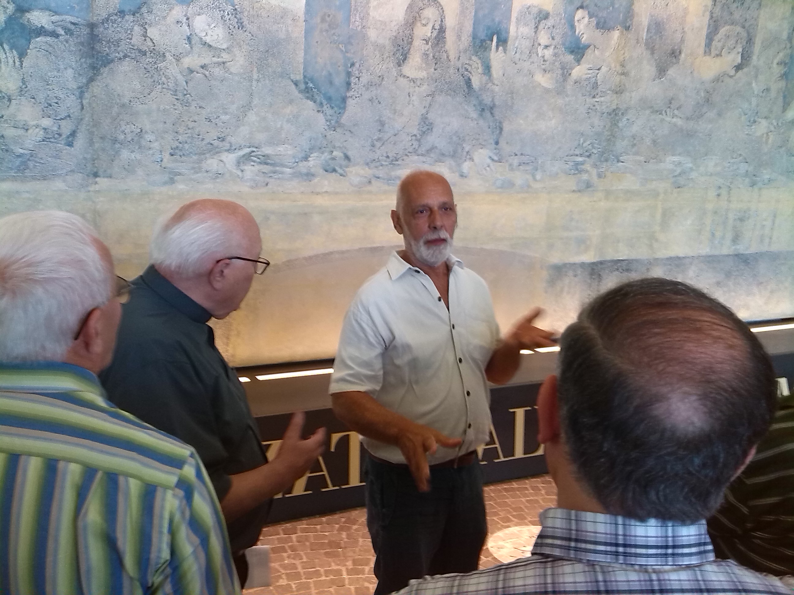 Con la visita all’Ultima Cena di Leonardo in cocciopesto, alla stazione Mediopadana di Reggio emilia si è conclusa la giornata di fraternità dei Servi di domenica 2 agosto. L’autore Giuliano Melioli ci ha accolto calorosamente e ci ha guidato alla comprensione dell’opera chiedendoci esplicitamente un contributo di riflessione riguardante il progetto che porterà l’opera a Roma durante l’Anno Santo della Misericordia.Melioli, come ha scritto don Emanuele sul Vincolo, ha ripreso nei minimi dettagli il capolavoro di Leonardo, un affresco che ha iniziato a deteriorarsi già 20 anni dopo la sua creazione e che è stato recentemente restaurato. Lo ha riprodotto a dimensioni naturali (mt 4 x 9), usando terra argillosa (cocciopesto, secondo l’arte dell’antica Roma), utilizzando però solo due colori (l’azzurro del cielo e il giallo/verde della terra). La novità più rilevante della interpretazione e riproduzione di Melioli è il pane, posto davanti a Gesù, distaccato dalla mensa. La pagnotta è divisa in quattro parti di cui una dorata (pane condiviso, vitale) e le altre tre annerite (pane ammuffito, sprecato, morto). Sotto, sempre più verso lo spettatore, il messaggio di ispirazione dostoievskyana “Un pane spezzato salverà il mondo”. L’evento si colloca all’interno del tema dell’EXPO 2015, in controtendenza però rispetto alla sua visione produttivistica e commerciale. Per Melioli Reggio non ha solo eccellenze agroalimentari come formaggio, vino, aceto e altro. Ha una lunga e invidiata tradizione di cooperazione, di volontariato, di solidarietà internazionale, portata avanti da pionieri, profeti, artisti, politici, cantautori, liberi professionisti, medici, artigiani, tecnici, agricoltori, infermieri , giovani volontari, missionari: donne e uomini che hanno testimoniato e diffuso nel mondo, con gratuità, a volte a caro prezzo, una cultura di convivialità, di collaborazione, di servizio, una spiritualità e un’etica di pace, di lotta non violenta per la giustizia, uno stile di vita improntato a sobrietà, a passione per l’uomo e per il creato, a rispetto per le differenze e per le minoranze… Reggio non può negare, né ignorare, né dimenticare tutto ciò. Fa parte della sua storia, passata, presente e certamente anche futura. Il capolavoro di Leonardo e di Giuliano sarà piazzato all’entrata della Stazione, su di un piano inclinato, a mò di realtà incombente, ineludibile, non apocalittica ma fortemente propositiva, provocatrice, urgente. E realizzabile! Le due mani di Gesù – quella sinistra aperta per il dono, quella destra contratta e difensiva per proteggere il dono dalla mano aggressiva di Giuda – tendono ad indicare due vie di salvezza universale : la condivisione volontaria e amorevole del bene, e la difesa dal male, da tutto ciò che può mortificarlo, distruggendo dignità, bellezza, santità e grazia.