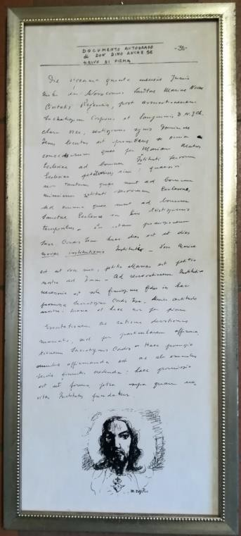 Ho sempre ammirato il pudore da Lui tenuto nel rivelarci un fatto così straordinario solo dopo la sua morte. Non ha voluto firmarlo ed ha usato, sia pure a fatica, la bella lingua della Chiesa che da autorevolezza e sacralità a questa sua grande esperienza personale di Dio Figlio. La sua calligrafia è inconfondibile.